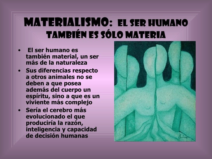 11. Materialismo: El ser humano también es sólo materia• El ser humano es también material, un ser más de la naturaleza• Sus diferencias respecto a otros animales no se deben a que posea además del cuerpo un espíritu, sino a que es un viviente más complejo• Sería el cerebro más evolucionado el que produciría la razón, inteligencia y capacidad de decisión humanas
