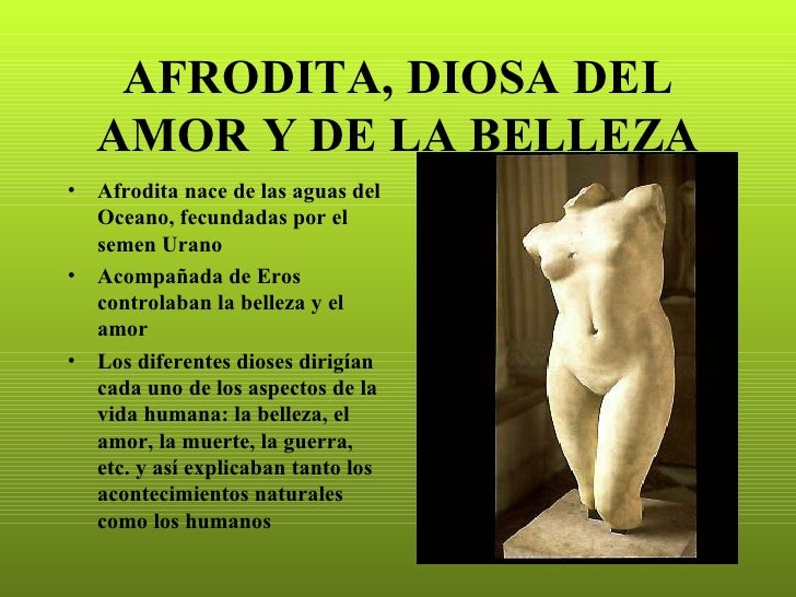 3. AFRODITA, DIOSA DEL AMOR Y DE LA BELLEZA• Afrodita nace de las aguas del Oceano, fecundadas por el semen Urano• Acompañada de Eros controlaban la belleza y el amor• Los diferentes dioses dirigían cada uno de los aspectos de la vida humana: la belleza, el amor, la muerte, la guerra, etc. y así explicaban tanto los acontecimientos naturales como los humanos